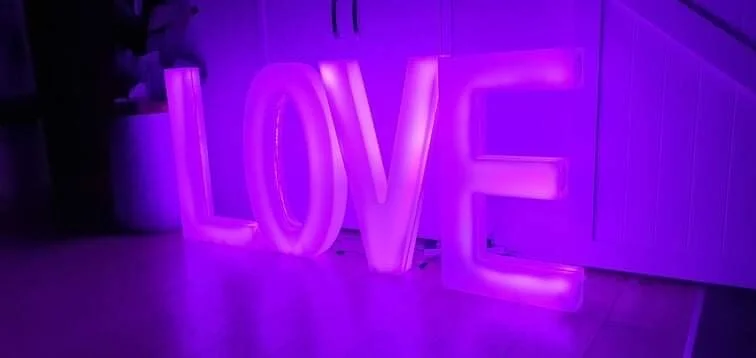 LED Love Letters.1 Set Available$150 // Set12 colour options, 4 modes. Remote controlled. Power operated 81cm H per letter